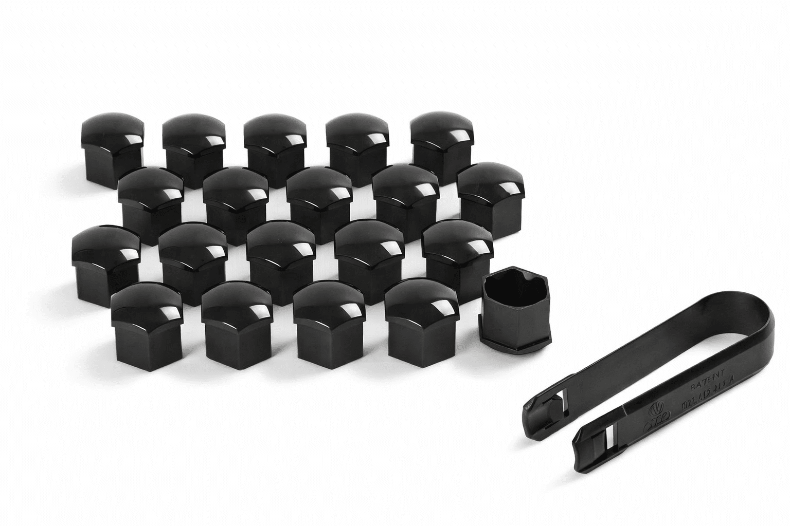Skoda Radschraubenabdeckungen Schraubenblenden 20 Stück inkl. Abziehwerkzeug (schwarz glänzend)